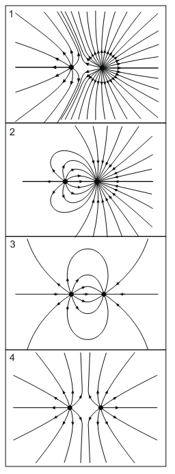 A (UFRGS 2013) Na figura abaixo, está mostrada uma série de quatro configurações de linhas de campo elétrico.