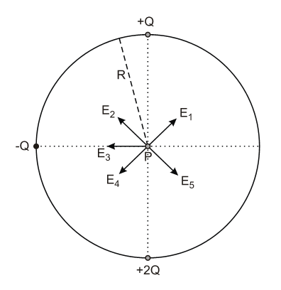B (UFRGS 2012) As cargas elétricas +Q, -Q e +2Q estão dispostas num círculo de raio R, conforme representado na figura abaixo.