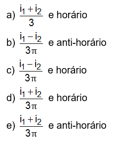 - d) 1,5 π e o sentido da corrente na espira deve ser anti-horário.