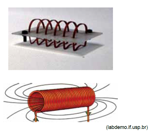 A passagem de uma corrente elétrica através desse fio cria, no interior do solenoide, um campo magnético cuja intensidade