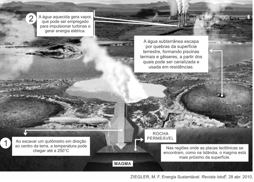 A fonte de energia representada na figura, considerada uma das mais limpas e sustentáveis do mundo, é extraída do calor gerado
