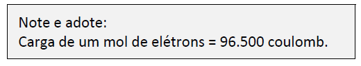 Dados: Constante de Faraday F = 96500C/mol; Massa molar em g/mol: Cu = 63,5
