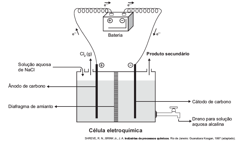No processo eletrolítico ilustrado, o produto secundário obtido é o