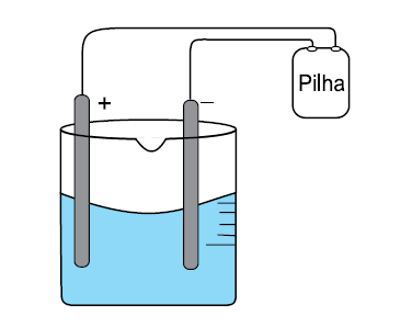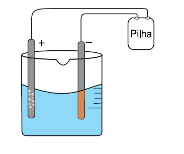 A (FGV SP 2016) Em um experimento em laboratório de química, montou-se uma célula eletrolítica de acordo com o esquema: