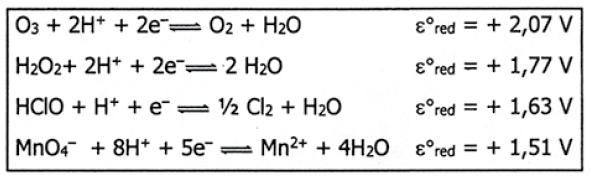 - e) o permanganato, entre as substâncias relacionadas no quadro, é o mais poderoso agente oxidante.