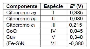 Respeitando o gradiente de energia livre, o fluxo de elétrons deve percorrer a sequência mostrada em: