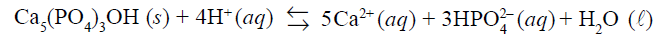 - b) Explique, considerando o equilíbrio apresentado e o Princípio de Le Chatelier, o efeito da diminuição do pH sobre o esmalte dos dentes.
