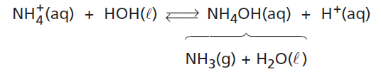 representa a hidrólise do cátion amônio.