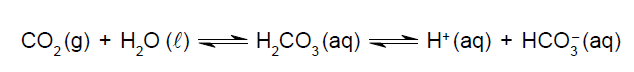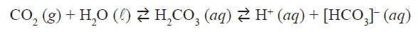 Considere também que essas duas amostras podem estar gaseificadas com CO2, cujo equilíbrio químico em meio aquoso é representado na equação