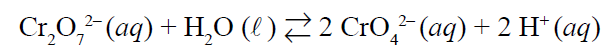 2 CrO42- (aq) + 2 H+ (aq) ⇄ Cr2O72- (aq) + H2O (l)