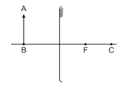 Com base no esquema da figura, assinale a alternativa que representa corretamente o gráfico da imagem do objeto AB, colocado perpendicularmente ao eixo principal de um espelho esférico convexo.