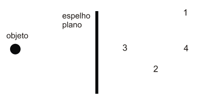 D (CFTMG 2013) Diversos tipos de espelhos podem ser utilizados em aparelhos tais como telescópio, binóculos e microscópios. A figura a seguir representa um objeto puntiforme em frente a um espelho plano.