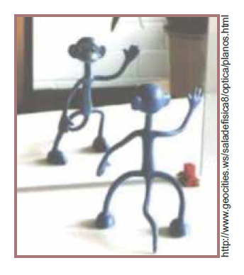 C (FACULDADE DE MEDICINA ALBERT EINSTEIN 2017) Um pequeno boneco está diante de um espelho plano, conforme a figura abaixo. Em relação à imagem conjugada pelo espelho, podemos classificá-la como tendo as seguintes características: