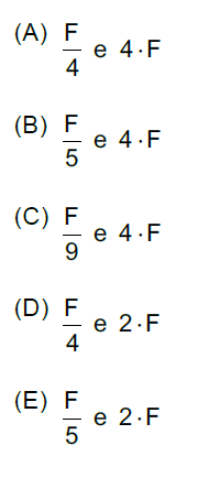 D (MACKENZIE 2011) Duas cargas elétricas puntiformes, quando separadas pela distância D, se repelem com uma força de intensidade F. Afastando-se essas cargas, de forma a duplicar a distância entre elas, a intensidade da força de repulsão será igual a: