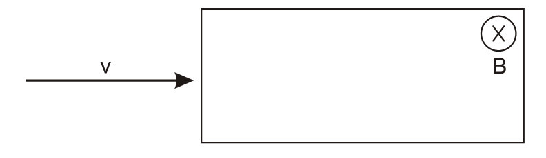 Deseja-se utilizar um dispositivo desse tipo para selecionar prótons que tenham a velocidade de 3,0 x 104 m/s. Para tal, um feixe de prótons é lançado na região demarcada pelo retângulo em que existe um campo magnético de 2,0 x 10-3 T perpendicular à página e nela entrando, como mostra a figura a seguir.