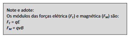 Nessas condições, o módulo e a orientação do campo elétrico aplicado na região demarcada, que permitirá selecionar os prótons com a velocidade desejada, é