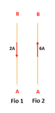 - a) Fios condutores paralelos e percorridos por correntes elétricas de mesmo sentido atraem-se, enquanto os de sentidos opostos repelem-se.
