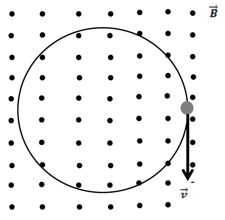 (UFPR 2014) Uma partícula de massa m e carga q, inicialmente se deslocando com velocidade penetra numa região onde há um campo magnético uniforme de módulo B e direção perpendicular à velocidade Na presença desse campo magnético, a trajetória da partícula é uma circunferência. Com base nessas informações e nos conceitos de eletricidade e magnetismo, deduza equações literais envolvendo as variáveis dadas, para: