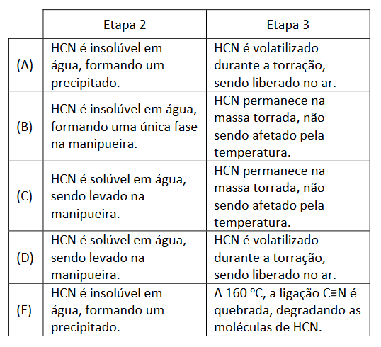 D (FUVEST 2018) A mandioca, uma das principais fontes de carboidratos da alimentação brasileira, possui algumas variedades conhecidas popularmente como “mandioca brava”, devido a sua toxicidade. Essa toxicidade se deve à grande quantidade de cianeto de hidrogênio (HCN) liberado quando o tecido vegetal é rompido.