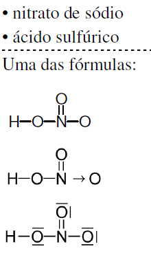 Escreva os nomes dos reagentes empregados nesse processo e apresente a fórmula estrutural plana do ácido nítrico.- a) Ácido é toda substância que, em solução aquosa, sofre dissociação iônica, liberando como único cátion o H–.
