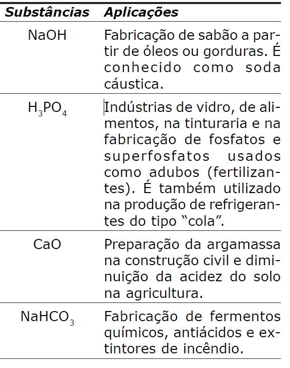E (UTFPR 2010) A tabela a seguir relaciona algumas substâncias químicas e suas aplicações frequentes no cotidiano.