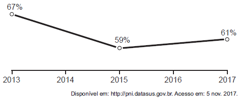 (PONTO) B (ENEM 2018) A raiva é uma doença viral e infecciosa, transmitida por mamíferos. A campanha nacional de vacinação antirrábica tem o objetivo de controlar a circulação do vírus da raiva canina e felina, prevenindo a raiva humana. O gráfi co mostra a cobertura (porcentagem de vacinados) da campanha, em cães, nos anos de 2013, 2015 e 2017, no município de Belo Horizonte, em Minas Gerais. Os valores das coberturas dos anos de 2014 e 2016 não estão informados no gráfi co e deseja-se estimá-Ios.