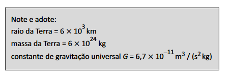 D (FUVEST 2015) A notícia “Satélite brasileiro cai na Terra após lançamento falhar”, veiculada pelo jornal O Estado de S. Paulo de 10/12/2013, relata que o satélite CBERS-3, desenvolvido em parceria entre Brasil e China, foi lançado no espaço a uma altitude de 720 km (menor do que a planejada) e com uma velocidade abaixo da necessária para colocá-lo em órbita em torno da Terra. Para que o satélite pudesse ser colocado em órbita circular na altitude de 720 km, o módulo de sua velocidade (com direção tangente à órbita) deveria ser de, aproximadamente,