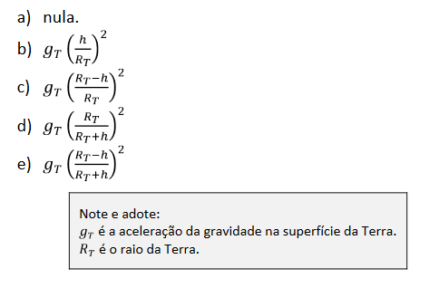 D (FUVEST 2016) A Estação Espacial Internacional orbita a Terra em uma altitude h. A aceleração da gravidade terrestre dentro dessa espaçonave é