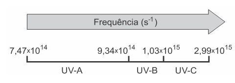 B (ENEM 2015) A radiação ultravioleta (UV) é dividida, de acordo com três faixas de frequência, em UV-A, UV-B e UV-C, conforme a figura.