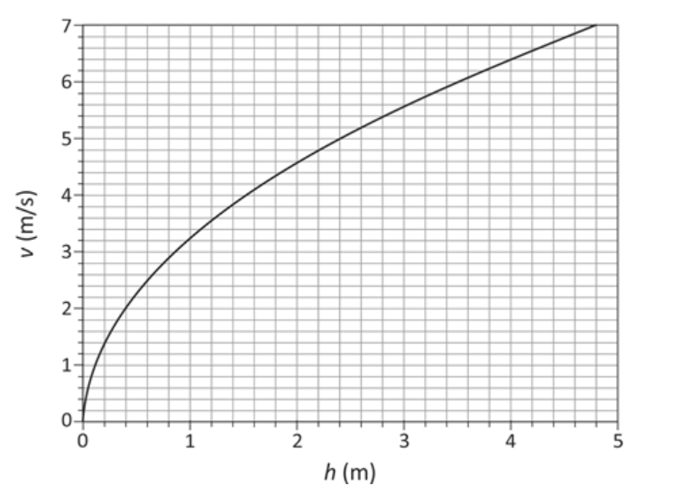 C (FUVEST 2018) Ondas na superfície de líquidos têm velocidades que dependem da profundidade do líquido e da aceleração da gravidade, desde que se propaguem em águas rasas. O gráfico representa o módulo v da velocidade da onda em função da profundidade h da água.