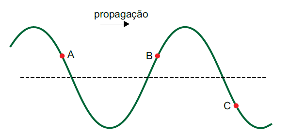 O comprimento de onda é a distância entre dois pontos que se repetem.