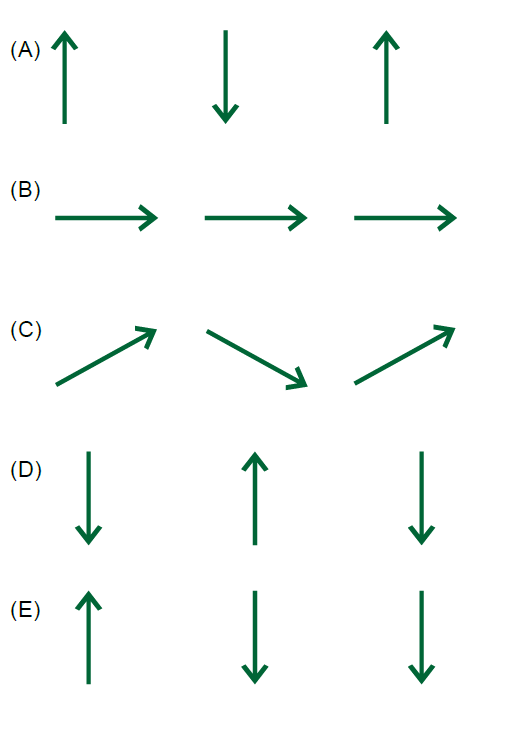 Considerando os pontos A, B e C indicados, as setas que representam, fora de escala, as velocidades vetoriais vA, vB e vC desses pontos, estão correta e respectivamente desenhadas em