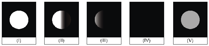 As figuras a seguir mostram como um observador, da Terra, pode ver a Lua. Numa noite de Lua Cheia, ele vê como na figura I.