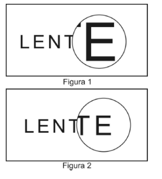 Justapondo-se uma outra lente delgada à primeira, mantendo esta associação à mesma distância d da folha, o observador passa a enxergar, da mesma posição, uma nova imagem, duas vezes menor, como mostra a figura 2.