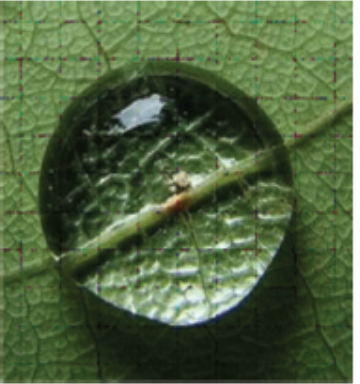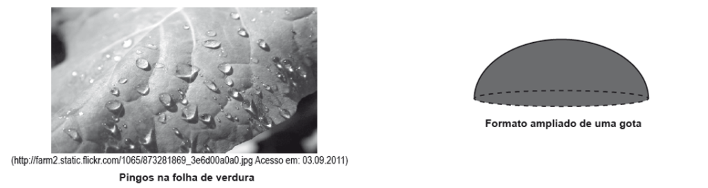 D (PUC SP 2011) A imagem corresponde a uma fotografia de uma gota d’água apoiada sobre uma folha. Observe atentamente a imagem e assinale a única afirmação correta.