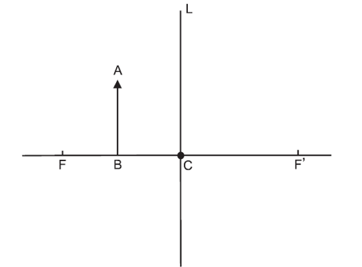 Os pontos C, F e F’ identificam o centro ótico e os focos da lente. A imagem do objeto real AB fornecida pela lente é: