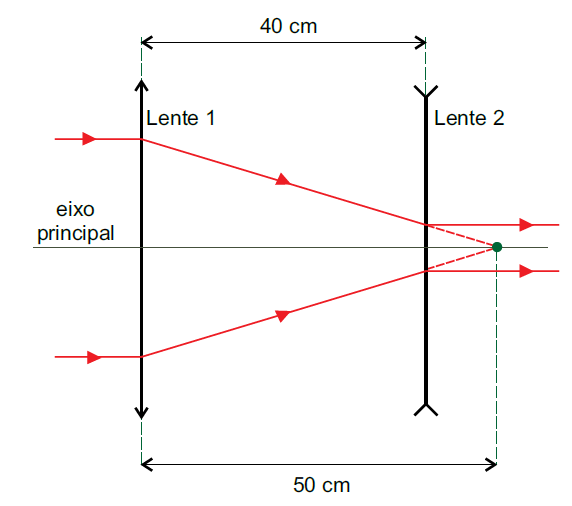 Sendo |f1| e |f2| os módulos das distâncias focais dessas lentes, o valor da relação |f1|/|f2| é