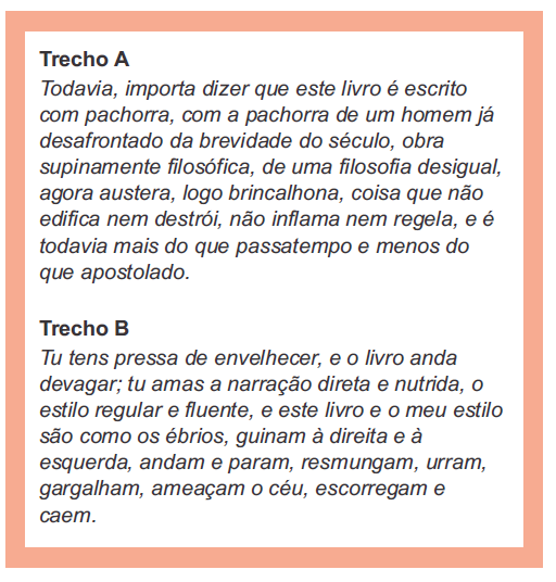 Considere as seguintes afirmações sobre o excerto das Memórias póstumas de Brás Cubas, obra fundamental da literatura brasileira: