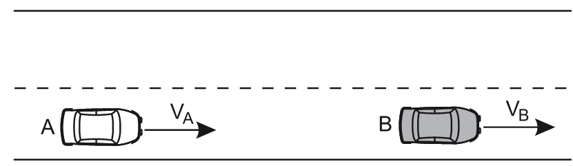 B (IFSP 2012) Em um trecho retilíneo de estrada, dois veículos, A e B, mantêm velocidades constantes VA = 14 m/s e VB = 54 km/h .