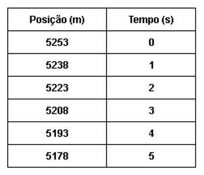 B (CFTMG 2006) Um carro move-se ao longo de um trecho retilíneo da avenida Amazonas, variando sua posição com o tempo, de acordo com a tabela a seguir.