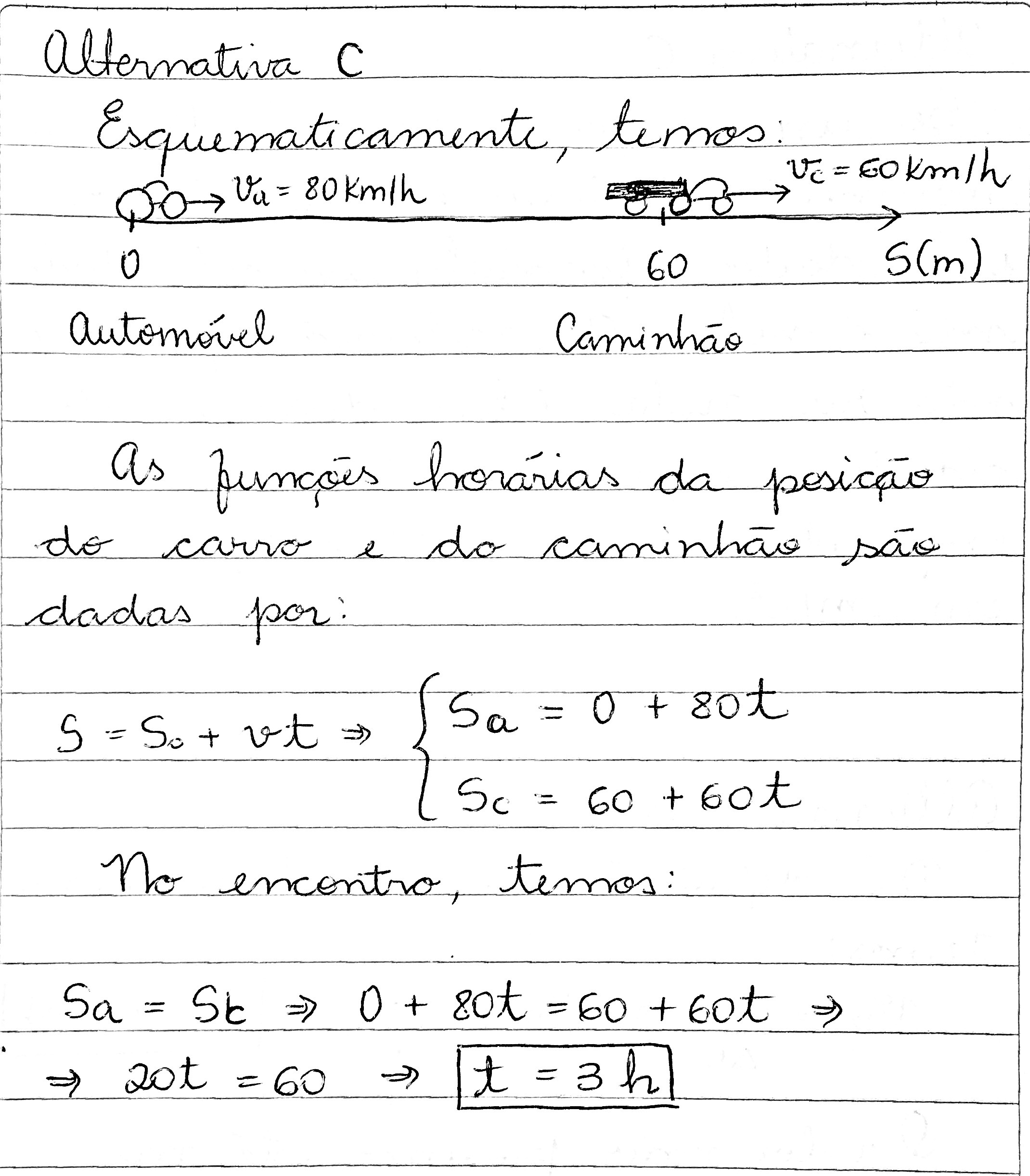 C (PUC RJ 2017) Um carro saiu da posição xi = 0 km e percorreu uma estrada retilínea e horizontal até xf = 10 km Entre 0 km e 5 km sua velocidade foi 60 km/h e, entre 5 km e 10 km sua velocidade foi 30 km/h.