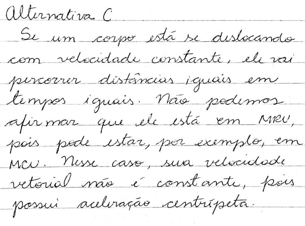 - c) percorre distâncias iguais em intervalos de tempos iguais.