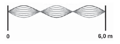 D (PUC RIO 2012) Uma corda presa em suas extremidades é posta a vibrar. O movimento gera uma onda estacionária como mostra a figura.