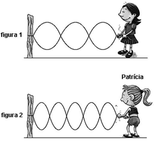 A figura 1 mostra a configuração da corda quando Sílvia está brincando e a figura 2 mostra a configuração da mesma corda quando Patrícia está brincando.