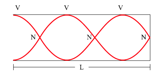 - a) Uma expressão que pode corretamente ser usada para se determinar a frequência do som emitido por esse instrumento é f = nv/2L em que v é a velocidade do som no ambiente, L é o comprimento do tubo e n é o número do harmônico emitido pelo instrumento para n = 1,2,3,….