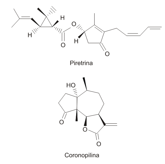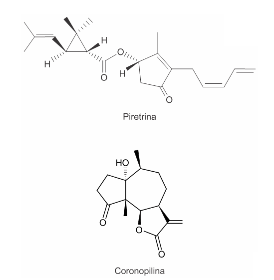 B (ENEM 2012) A produção mundial de alimentos poderia se reduzir a 40% da atual sem a aplicação de controle sobre as pragas agrícolas. Por outro lado, o uso frequente dos agrotóxicos pode causar contaminação em solos, águas superficiais e subterrâneas, atmosfera e alimentos. Os biopesticidas, tais como a piretrina e coronopilina, têm sido uma alternativa na diminuição dos prejuízos econômicos, sociais e ambientais gerados pelos agrotóxicos.