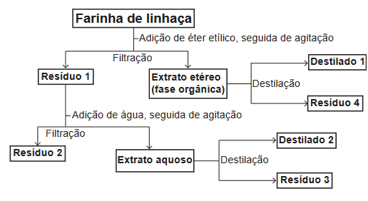 Considere o esquema, que resume um processo de separação dos componentes principais da farinha de linhaça dourada.