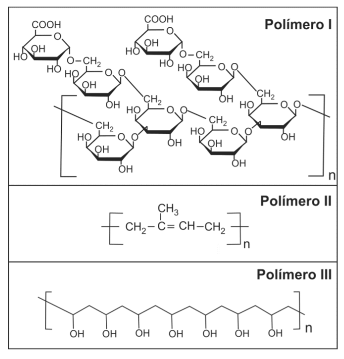 A (FUVEST 2013) Um funcionário de uma empresa ficou encarregado de remover resíduos de diferentes polímeros que estavam aderidos a diversas peças. Após alguma investigação, o funcionário classificou as peças em três grupos, conforme o polímero aderido a cada uma. As fórmulas estruturais de cada um desses polímeros são as seguintes: