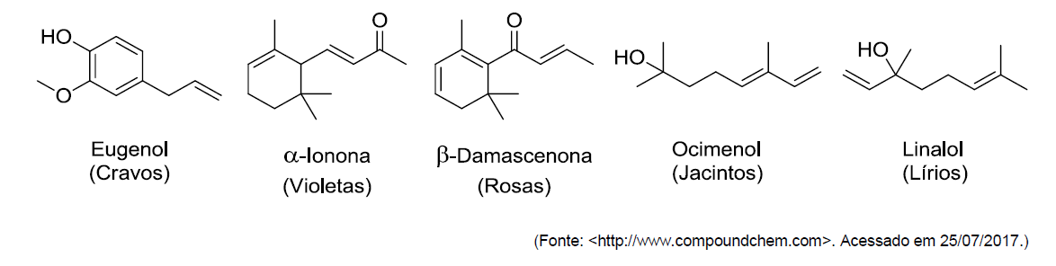 C (UFPR 2018) O aroma das flores é uma combinação de diversas substâncias orgânicas voláteis. Para cada flor, uma combinação