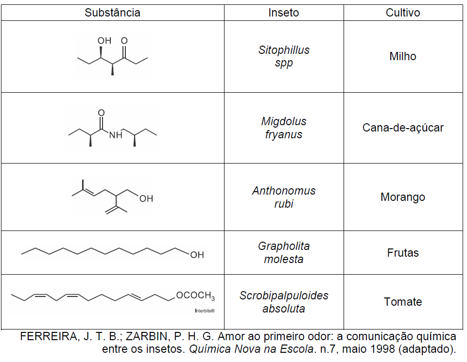 E (ENEM 2016) A busca por substâncias capazes de minimizar a ação do inseto que ataca as plantações de tomate no Brasil levou à síntese e ao emprego de um feromônio sexual com a seguinte fórmula estrutural: